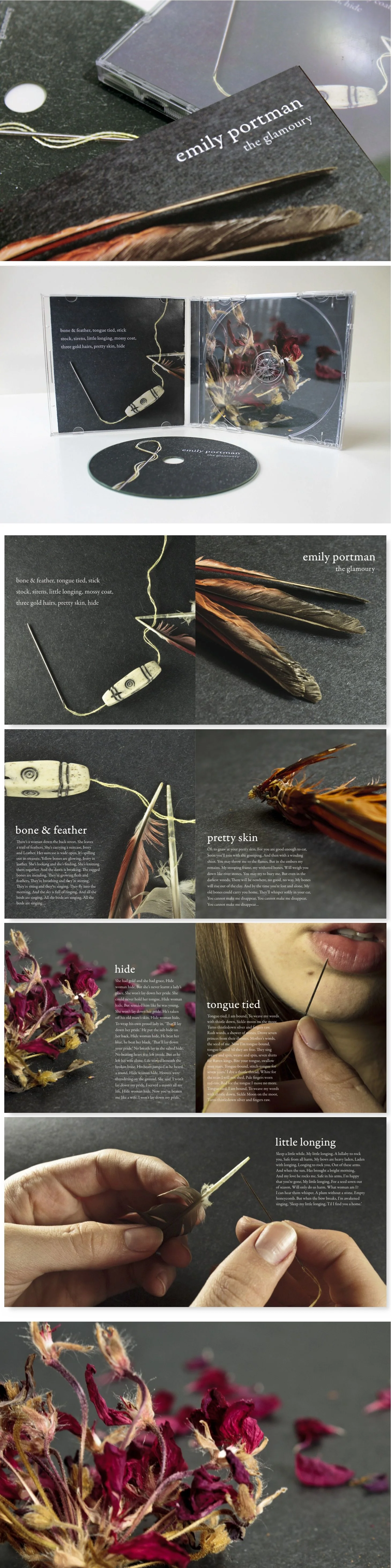 I chose to redesign Emily Portman's The Glamoury and focused the photography on the dark, often twisted folk tales Emily Portman illustrates in her songs. This project provided good experience in photography and packaging design.